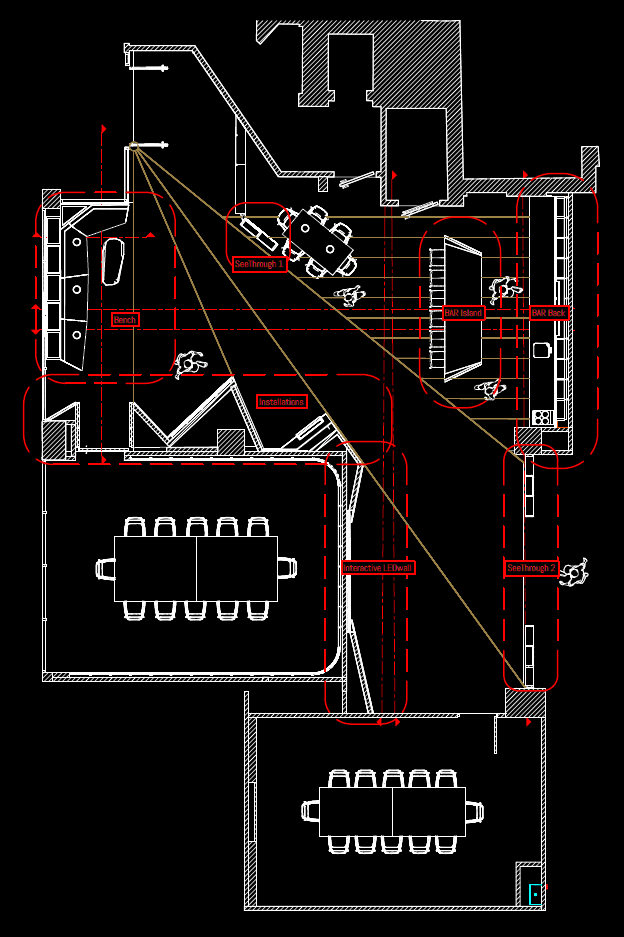 Our role involved synthesising the Pixel Artworks team creative inputs into a coherent layout and 3D design, ensuring that each significant viewpoint, namely the entrance, waiting area and bar area, was carefully considered in the placement of LED strips, video installations and spatial subdivisions,before builder handover.