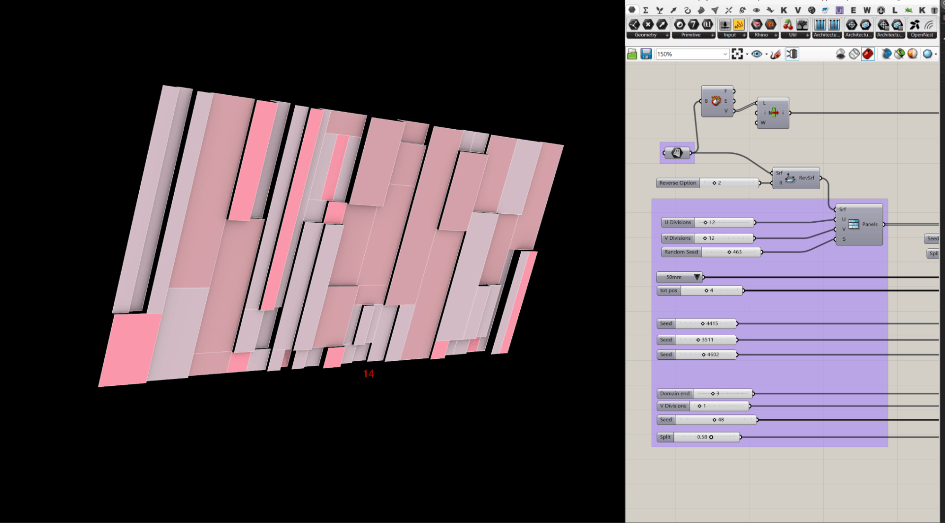 Parametric panel study for the side wall of an experiential tunnel.